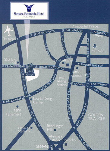 Menara Peninsula - JakartaSituated close to the Central Business District, shopping facilities and the Soekarno-Hatta International Airport, Hotel Menara Peninsula is an excellent choice for business or pleasure.