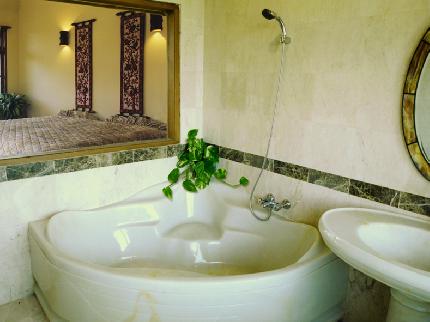 Each air-conditioned room is luxuriously appointed, boasting spacious bedroom and marble bathroom with