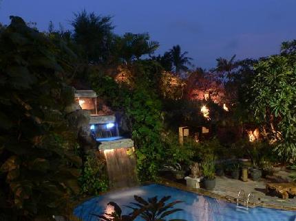 All rooms have private balcony overlooking swimming pool, cascading waterfall. Some beach view is seen from the top floor rooms.